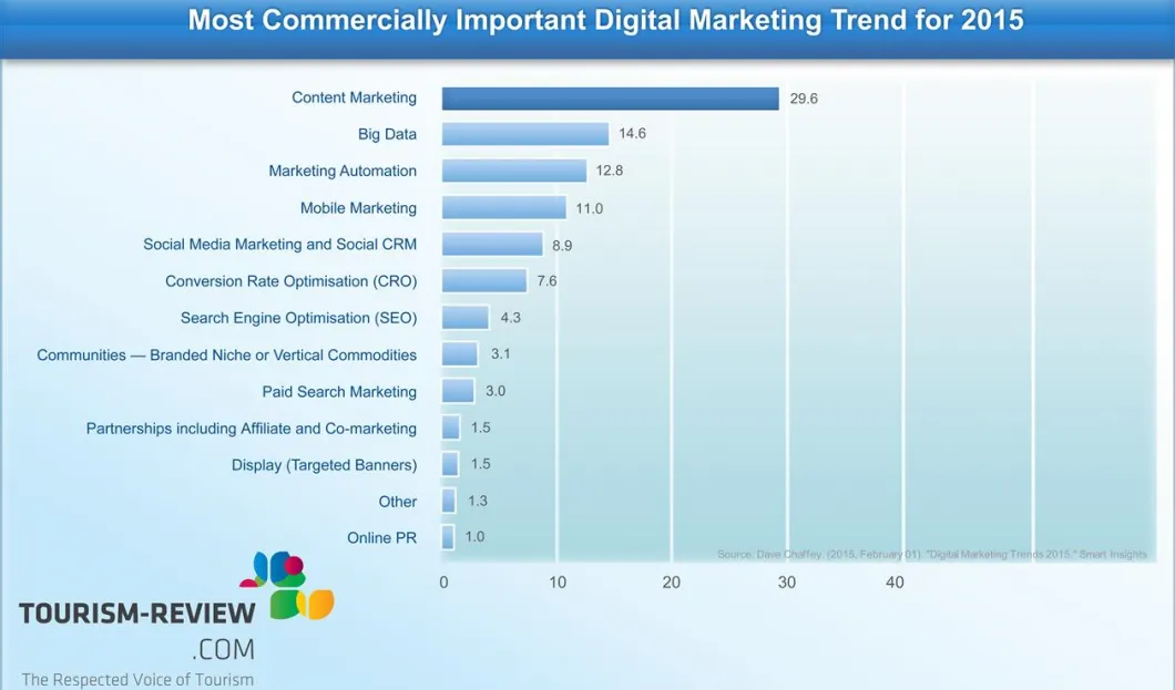 In the latest survey by Smart Insights on digital marketing trends for 2015, content marketing ranked as the top priority (see the chart).