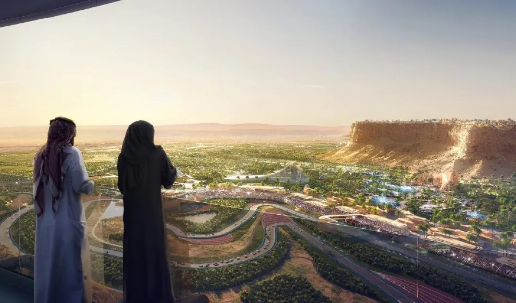 The Qiddiya project in Riyadh is a $10 billion development spanning 334 square kilometers. Over 45 projects, including more than 300 recreational and educational facilities, are planned in its first phase. These will feature a standard Formula 1 racetrack, a 20,000-seat cliff-top stadium, an 18,000-seat indoor arena, a children's playground, an aquatic center, a sports center, a theatre for performing arts, and a 2,000-seat cinema.