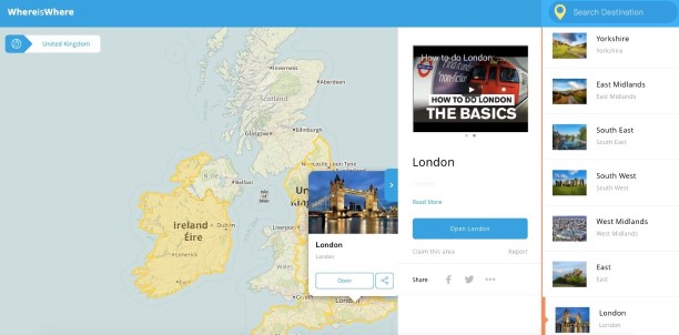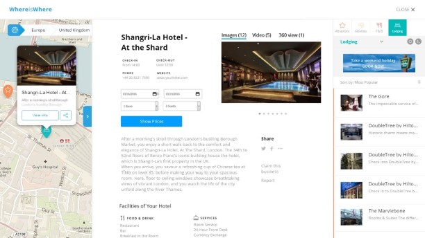 As an interactive world map, WhereIsWhere.com functions as a location-marketing tool, enabling businesses including hotels, attractions, icons and tourism authorities in the global tourism industry to show the world where they are, and what they have. Travel marketers claim their pins on WhereIsWhere's map platform; and under their pin, they can upload media in the form of videos, pictures, or even their latest promotions, to entice travellers to visit.