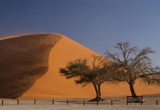 The Skeleton beach is a rather peculiar place lined with old rusting cargo ships as well as carcasses or skeletons of beached whales. Sossusvlei is a very old salt and clay pan which thanks to rich presence of diverse minerals offers a palette of changing colors. Its characteristic signature are scorched black trees growing though cracked white clay basin in front of a panorama of massive sand dunes, the highest of which reaches up 320 meters.