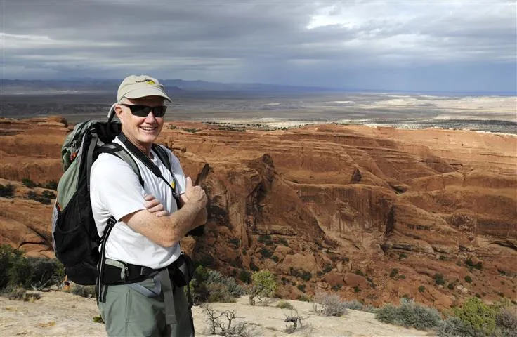 I’ve seen evidence of this time and again, particularly on one of my favorite trails in Arches National Park in Utah, the Delicate Arch trail. It’s a short trail, 1.5 miles one-way, with a moderate uphill grade. At one point we round a large sandstone fin and are rewarded with a magnificent view of Delicate Arch. However, between the arch and our viewpoint, the trail traverses a short section of fairly steep downward sloping sandstone. While not a vertical cliff, one still has to stop and think before moving forward.