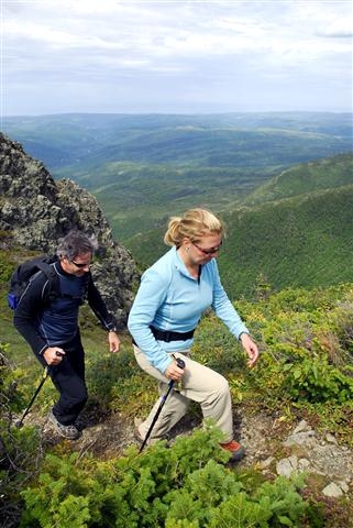 With prefabricated modules flown in by helicopter so as not to damage the surrounding landscape, the lodge rests on its own mountain top, overlooking layers of other mountain tops as far as the eye can see. At first, the quietness is almost uncomfortable. The 18 ensuite rooms, all in naturally-finished wood and furnished with Québecois handicrafts, the giant living room with fireplace, and the superb cuisine served family style with guests and guides sharing dishes around the table, all encourage relaxation and conversation. The lodge prides itself on being environmentally friendly, with both staff and guests practicing reduce, re-use and re-cycle on a daily basis. Everything possible is biodegradable including fuel.