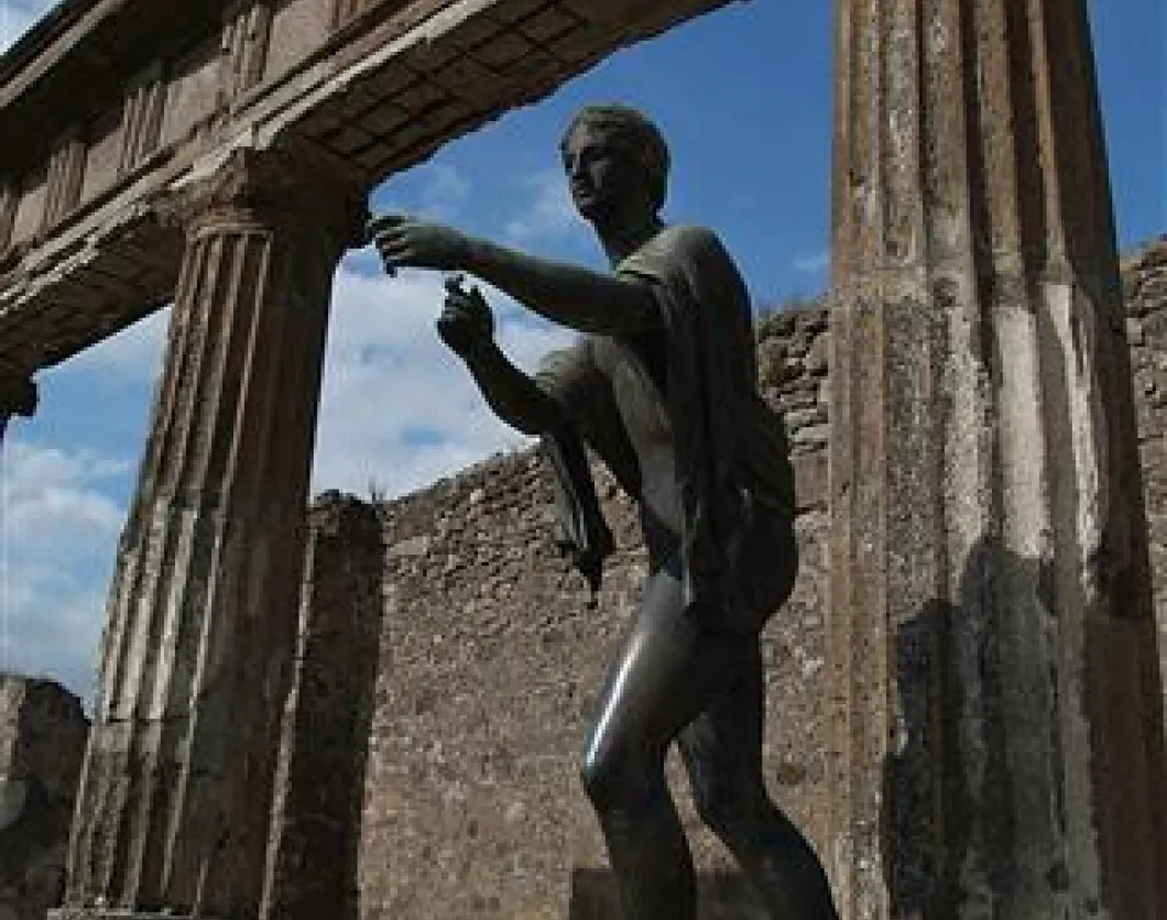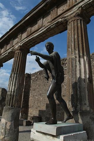 Thick layers of volcanic ash kept the town in a remarkable state of preservation. Visitors (and now web surfers) can admire buildings, statues, wall paintings, graffiti, even furniture. The eeriest bits are the plaster casts of the eruption's many victims. Their bodies rotted away and left holes in the hardened ash. Modern archaeologists filled these with plaster to create ghostly images of men, women, and children perishing from suffocation.