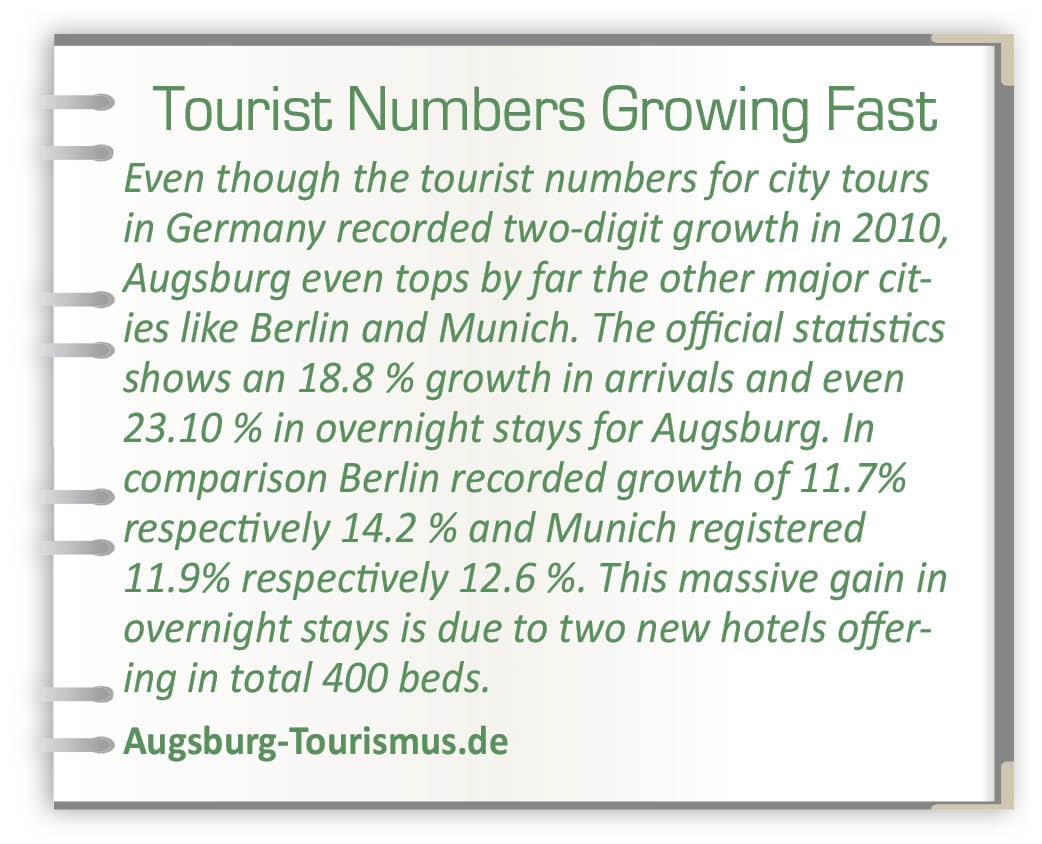 Concerts in splendid halls, opera and operetta in open air theaters, art exhibitions, magnificent churches, the Fuggerei and the Schaezler Palace draw tourists from the entire world.