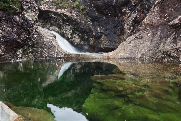 The Faerie Pools on the Island of Skye lie calmly in a shielded gap of lilac rock and red berried rowans. The hazy barbicans of the Black Cullin kingdom upsurge in the air like great Gaudi summits, the leftovers of an enormous volcano. Some of the pools are streaked with green and pink colors while two of them are connected by a subsurface arch. Swimming underneath makes it possible to see the rock faces that are covered with pieces of quartz.