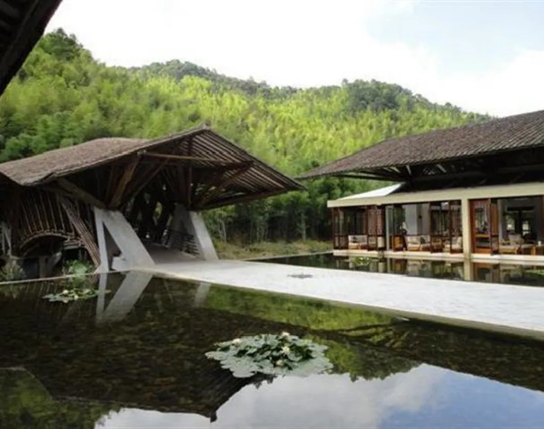 The lodge and spa stands on a 100-square mile natural reserve where River Gankengmei and River Sumaoping merge. Its plush green bamboo forest surrounding is evidently the inspiration behind the lodge’s design since you step into the establishment’s lobby via a bamboo bridge which blends well with the bamboo villas and the rammed-earth. The villas rest on raised podiums close to the water edges.