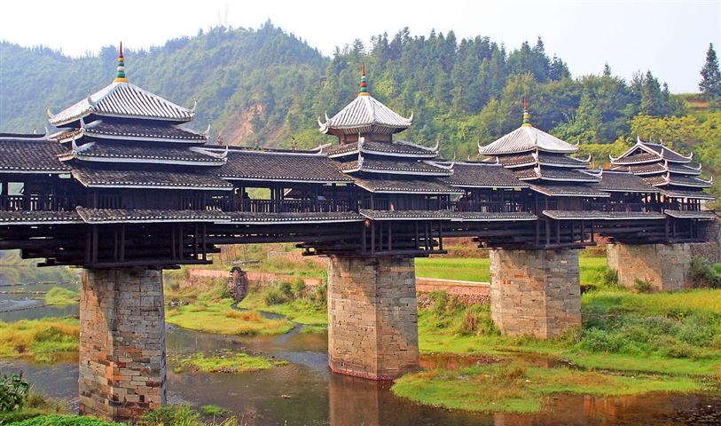 This is one of the more famed bridges within the area and in the country. The bridge's design has an alluring feel to it because of its covered nature. Immediately, the bridge gives off the familiar 'Chinese' atmosphere based on the inclusion of various pavilions. It has five pavilions lined across its length and is visible from afar.
