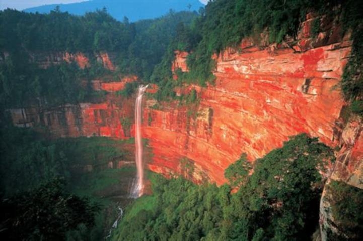 Chishui in Chinese means red water. The area got its name from the red sandstones covering the landscape. Additionally, there is a number of rare wild animals you can see. For example bears, tigers, pards, antelopes and macaques. On top of that Alsophila spinulosa or living fossil can be seen almost everywhere in this area. However, the most attractive place here are the Shizhangdong waterfalls.