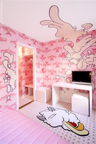 Hotel Fox was originally developed for an event involving Volkswagen who wanted a hotel in Copenhagen to host all the journalists for the world première of their new car – the Fox. 21 hot young designers from the fields of graphic design, art and illustration were invited to create the interior of Hotel Fox, with free rein to express themselves artistically. The artists produced some unique and amazing ideas, turning each of the hotel’s 61 rooms into an individual piece of art.