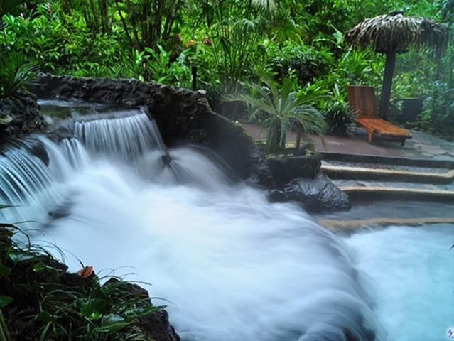 The Tabacon Resort’s hot springs are geologically formed by the heating action of magma in the earth’s core resulting in hot water that is 97% rain-based and enriched with various minerals from the earth’s rocky stratus. The main hot springs emerge from two surface openings at the rate of 80 liters (~20 gallons) per second and flow through the resort gardens at a temperature of 50 degrees Celsius. Another cold river spring, within the property, flows from the rainforest and is complemented by two more springs that are reserved specifically for consumable cold water. This brings the total number of springs in the resort to five, and identifies Tabacon as the first public Hot Springs resort in the Arenal Volcano Region. Furthermore, the resort is the highest rated, acclaimed and renowned luxury Hot Springs and Spa resort in the whole of Costa Rica.
