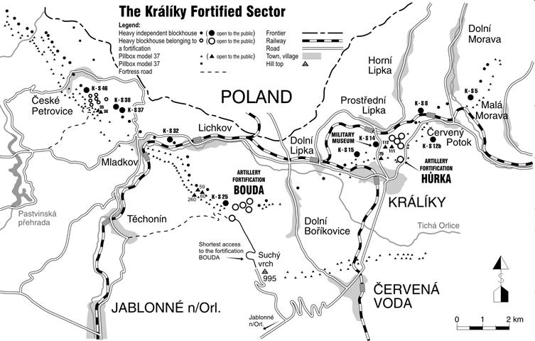 The Kraliky Fortified sector around the Czech town of Kraliky (close to Polish border) was responsible for the defense of this part of the former German-Czechoslovakian frontier in the 1930’s. It was one of the most intensively fortified frontier sectors in Europe of that time. This sector consisted of three major fortresses (Hurka, Bouda, Adam) with extended underground facilities, a number of heavy infantry blocks and extensive lines of small pillboxes supporting these big blocks between the hill tops named Malinik and Adam.