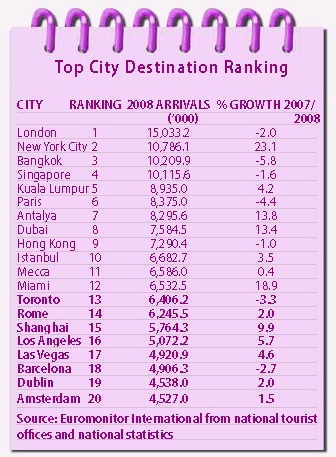 As the global economic crisis worsened in Q4 2008, international arrivals declined worldwide as travellers felt financially constrained and decided to stay close to home. However, the top 100 cities managed to end the year with 5.2% growth. A number of cities, such as New York and São Paulo, however, enjoyed double digit growth thanks to favourable exchange rates, aggressive government stimulus, increased air links and efficient promotional campaigns.