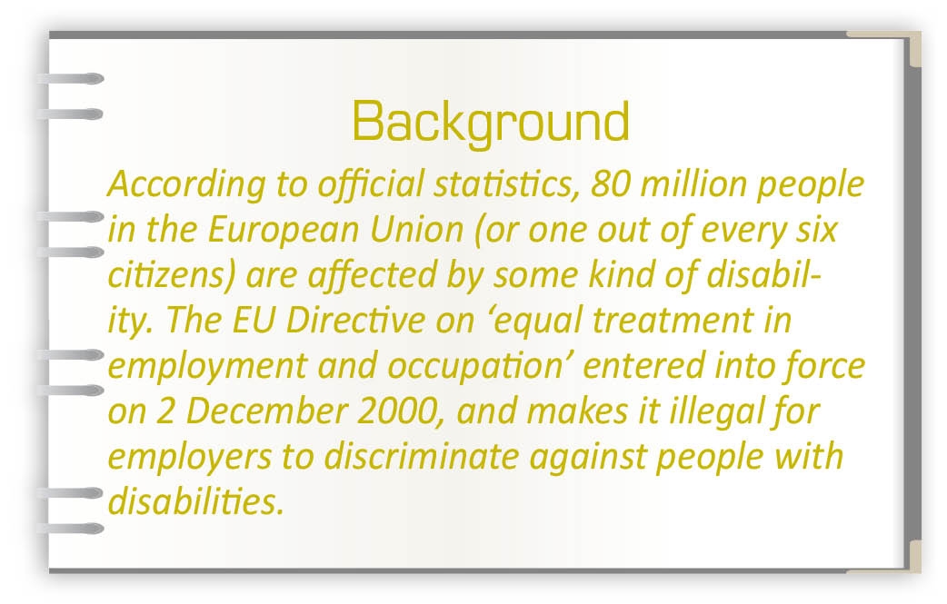 Currently there are some 80 million people with various kinds of disabilities in the European Union, but this number is expected to increase in the coming years, mainly as a result of the growing proportion of older citizens in the population.