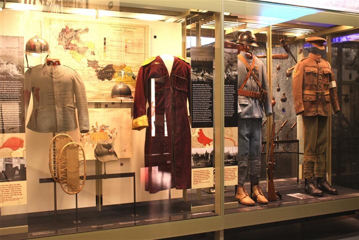 The cased exhibits offer content about the beginnings of the war, how and why countries went to war, how societies mobilized and how the war affected civilians as well as military participants, the global nature of the war, and many other experiences.