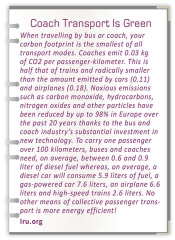 Graham Smith, Vice President of the IRU, concluded, “Since 90% of all European citizens’ mobility and travel needs are realized below a 100 km distance, the most credible policy and customer transport solution is undoubtedly the bus and the coach. Only by placing buses and coaches at the heart of policy making and by setting a clear political strategy and business target to double their use can policy-makers at EU, national, regional and local level create a legislative, market and operational environment conducive to produce a shift in the behavior of customers and tourists. In short, only bus and coach transport offers the possibility to achieve inclusive, efficient, affordable and sustainable mobility for European citizens and visitors, at the lowest cost to society.”