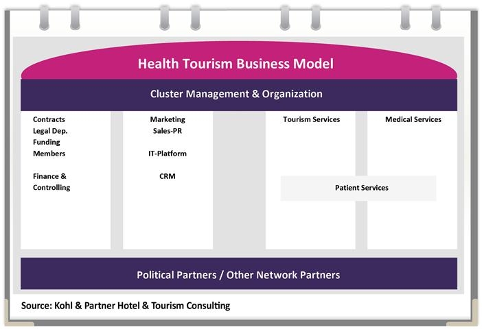 If country-, region- or company-clusters want to benefit from health tourism, a specialized business model must be developed. This model should determine the policies, the organizational structures, processes and the human and financial resources. It must precisely define the cooperation between the healthcare and tourism providers and the regional / national institutions. For example, how sales platforms can be processed and how the business is legally arranged. International co-operations have to be realized in order to exchange know-how, connections and to get access to European Funds.