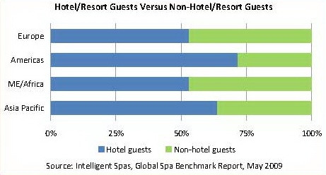 - Almost half the visits to spas in the Middle East/Africa and Europe regions are from people not staying in the adjoining hotel/resort.