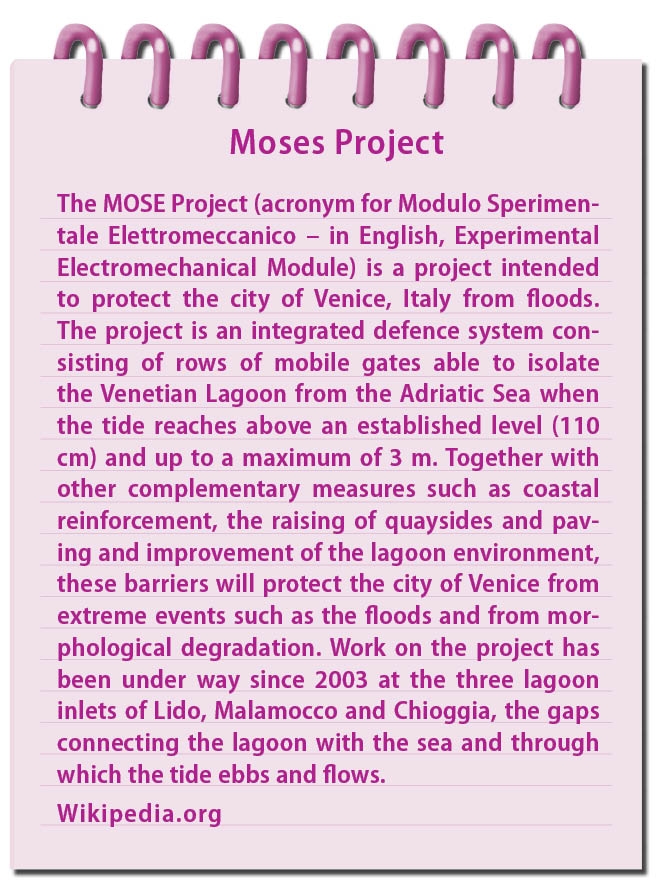 Throughout most of its history, Venice has been sinking at a rate of approximately 7 cm per year. When it was discovered that artesian wells might be to blame, they were banned in the 1960s. However, buildings, streets and hotels in Venice continued to experience noticeable sinking. In fact, it's been calculated that the city sank an incredible 24 cm in a single year recently. Global warming is being blamed for this increase, and the management of many Venice hotels and other establishments are getting behind different ideas to curb the problem. Some believe steel gates might work, and inflatable pontoons are being developed to block the major lagoon entrances during high tides. With any luck, these efforts will save this magical city from disappearing forever.