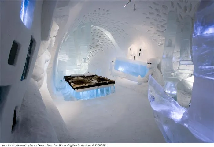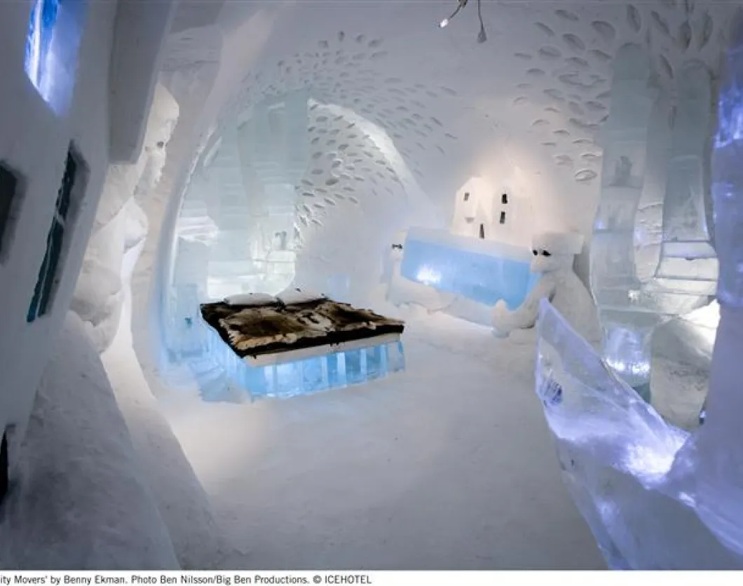 Before you climb into bed, you dress in warm thermal underwear, pull the hat over your ears and slip down into a comfortable sleeping bag on a bed built of blocks of ice, a thick mattress and reindeer skins. The phantasmagorical night is best spent with someone special.