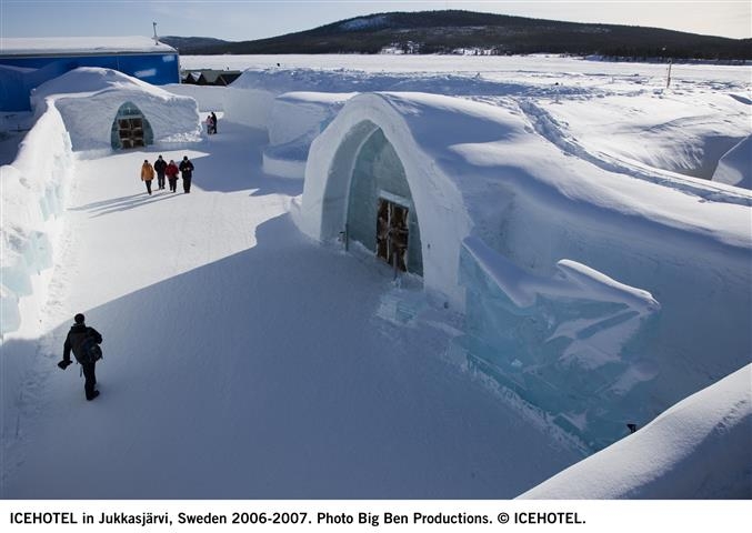 ICEHOTEL 2008/2009 has seventy-four rooms and occupies an area of 5 500 square meters. The building material – nearly 21 500 m3 of snow and 900 tonnes of ice – is borrowed from the nature. The hotel is open from the 10th of December until the middle of April. When winter turns into spring, the loan is returned to nature and once again ICEHOTEL turns into the world’s most modern ruin.