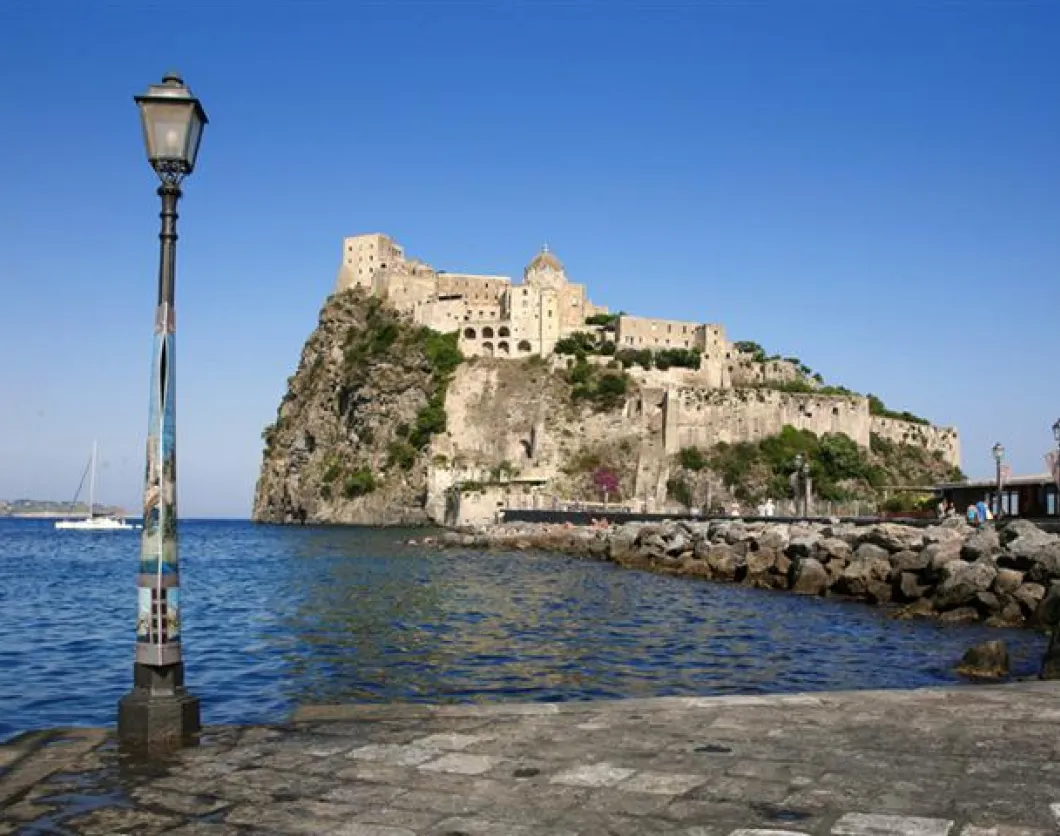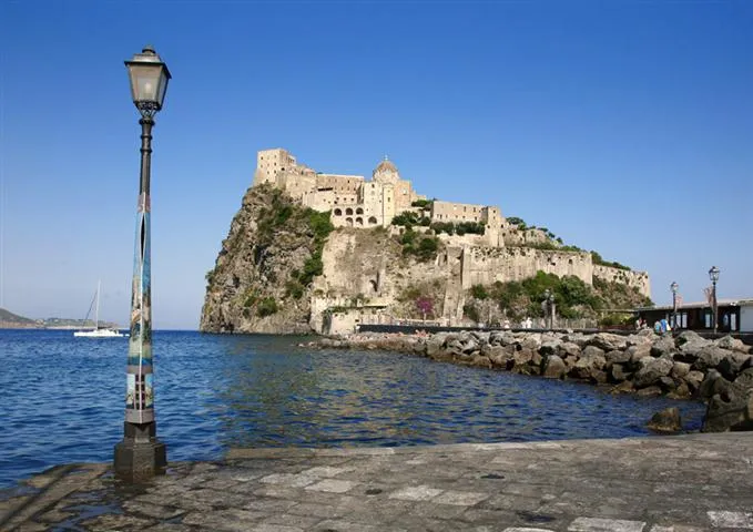 The regular hydrofoil service will take you from Naples to Ischia’s main port, Ischia Porto, and from there it’s a 20-minute walk, or a shot bus ride, east along the coast to Ischia’s most striking landmark. A single narrow causeway from the picturesque coastal town of Ischia Ponte leads to the 12th century Castello Aragonese, perched dramatically atop a huge rocky outcrop rising sheer from the sea.
