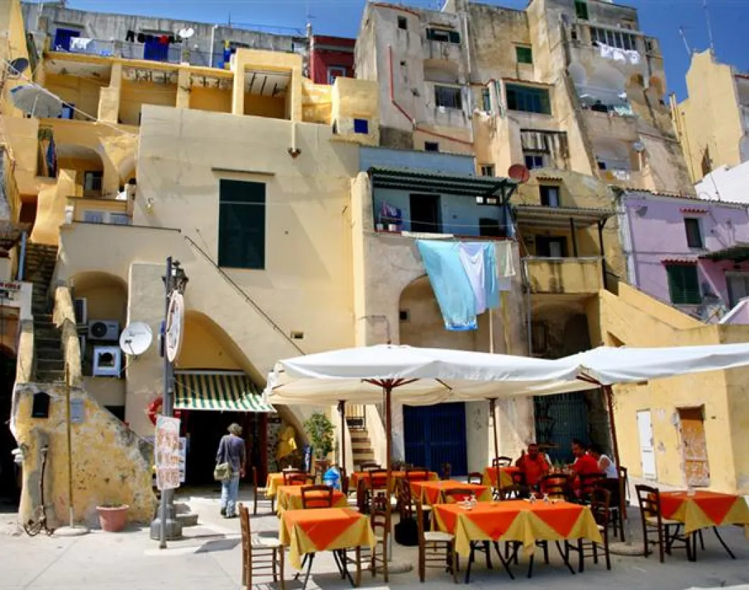 Procida is small enough to cross easily on foot – though there’s a good bus service – so head northeast to the fishing village of Corricella, a near-vertical warren of pastel-coloured houses linked by a zig-zag of scalatinelli (staircase streets). It’s simply one of the most striking places you’re likely to visit.
