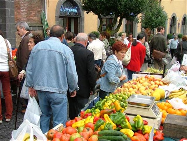 - Visiting the twice weekly market in which 60 percent of all goods must be local, the rest regional. Seeing the artichokes piled high in the spring, the pumpkins in the fall. Watching the interchange, the care with which food is selected, the camaraderie that exists. Perhaps recognizing some of the people seen during the passeggiata.