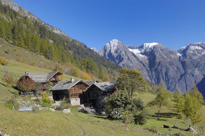 Built on three levels (animal shed level, room level and barn level), the construction is made of tree trunks, stacked on top of one another and interlocked at the corners, and is surrounded by the wide porches characteristic of Walser architecture.