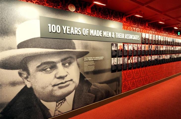 One wall in the museum, the wall of mobsters, is filled with mug shots and photos of famous mobsters from all over the United States who at some point in their lives defined organized crime as we know it today, hundreds of faces every bit as noteworthy as the actors that have portrayed them in the movies.