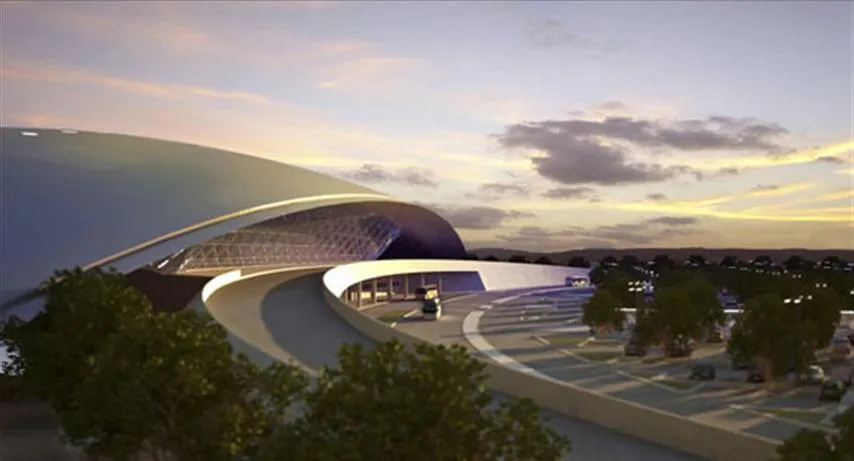 The project, today a reality, has become a landmark that represents Uruguay both from the spatial point of view as well as a symbol. A big roof of double curvature extends for almost 400 meters all along the length of the building, overhanging the limits of the building itself to rest on the ground. This roof has a maximum width of more than 130 meters and shelters the Departure Lounge, Check-in Hall and the Belvedere Terrace. The roof has a total surface of about 4 hectares (4,000 square meters).