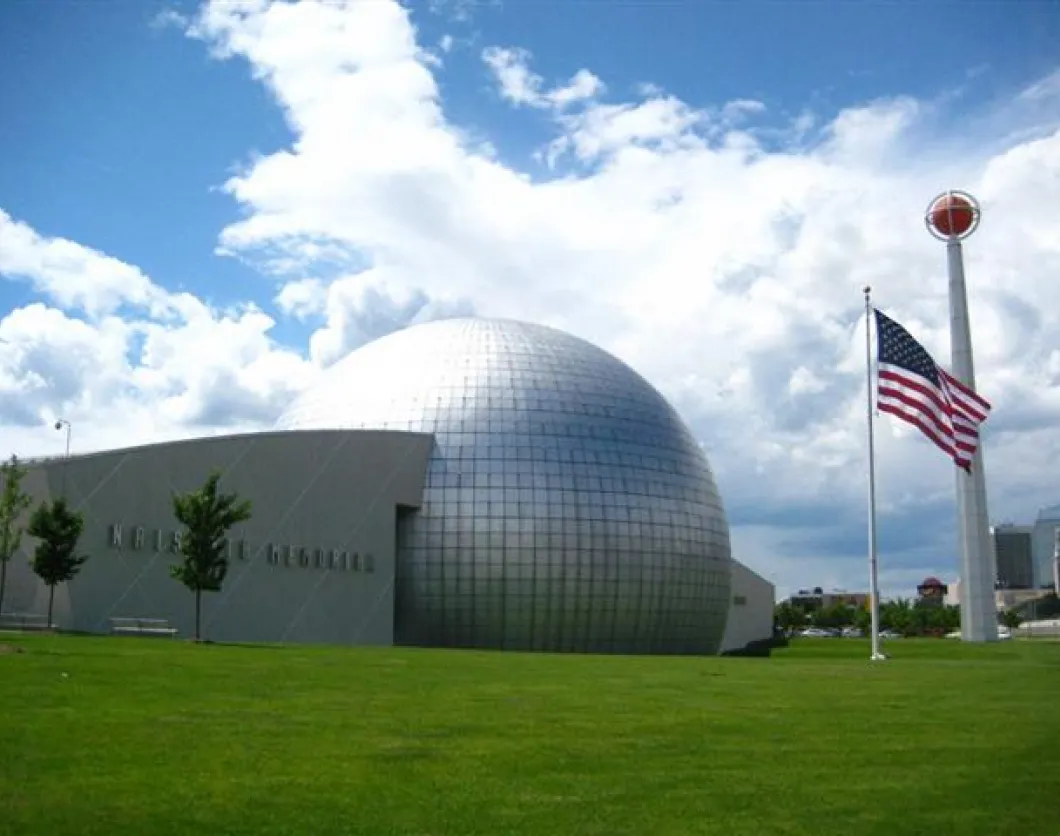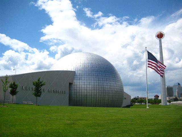 The state-of-the-art Naismith Memorial Basketball Hall of Fame engages basketball lovers of all ages. The game was invented in 1891 by Dr. James Naismith in Springfield. The architecture of the building features a basketball-shaped exterior in metallic silver color. Within the museum, the exhibits are displayed in three floors. Winding circular ramps take visitors to each floor. These ramps provide a view of the basketball court in the ground floor.