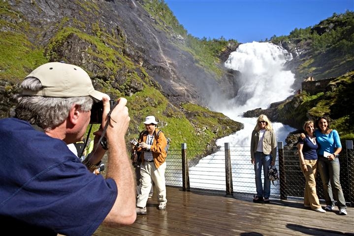 The journey from Flåm at the innermost part of the Aurlandsfjord, takes you through the Flåmsdalen valley to the high mountain station at Myrdal on the Bergen Railway, is a railway experience unparalleled in Europe; 20 km long with a height difference of 865 meters. The journey provides some of Norway's wildest and most magnificent scenery. You can see rivers that cut through deep ravines, waterfalls cascade down the side of steep, snow-capped mountains and mountain farms cling dizzily to sheer slopes. The train travels slowly and even stops at the most scenic spots, photo stop at the Kjosfossen waterfall. The Society of International Railway Travelers has listed the Flåm Railway as one of the world’s top 25 train journeys!