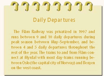 Every year close to 520.000 passengers travel on the Flåm Railway making it one of Norway’s major and most spectacular tourist attractions. The Flåm Railway is one of the world’s steepest railway lines on normal gauge. The gradient is 55/1000 on almost 80% of the line, i.e. a gradient of one in eighteen. The twisting tunnels that spiral in and out of the mountain are manifestation of the most daring and skilful engineering in Norwegian railway history.