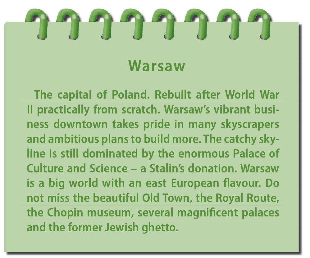 Central Poland, with stretches of meadows, is dominated by major tourism-business centers such as Lodz or Warsaw. Lodz retains the remnants of the cotton industry boom of the 19th and 20th centuries. Warsaw is a captivating city of contrasts, resulting from World War II demolitions, post-war communist architecture, and post-communism skyscraper boom.