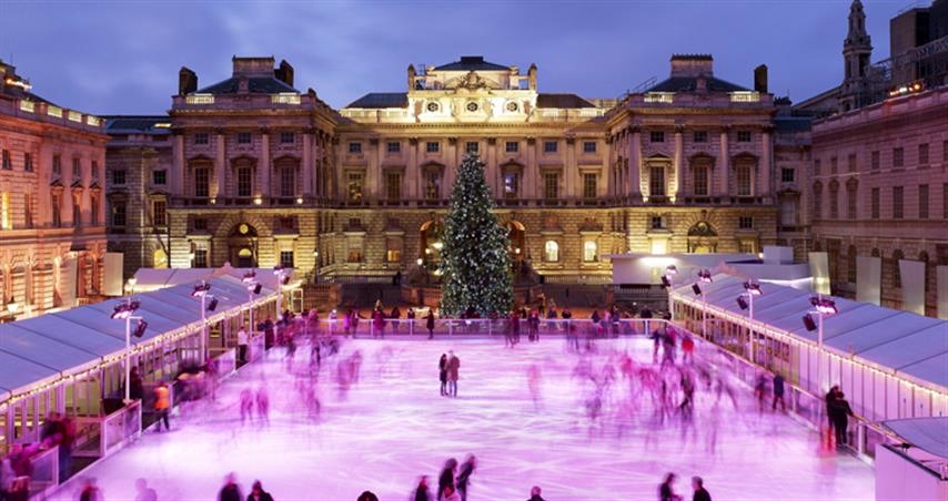 Care for some colonial style skating? Picture this – you're flying on the ice on your skates. Suddenly you feel a bit chilly and decide to indulge yourself in some high tea. You can have it. Later on, you find yourself swirling champagne glasses and munching on truffles. Of course, you can't imagine not having a grand dinner before you decide to hang up your skates and head home. All of this comes with the special Skate Extras package at the skating rink at the Somerset House.