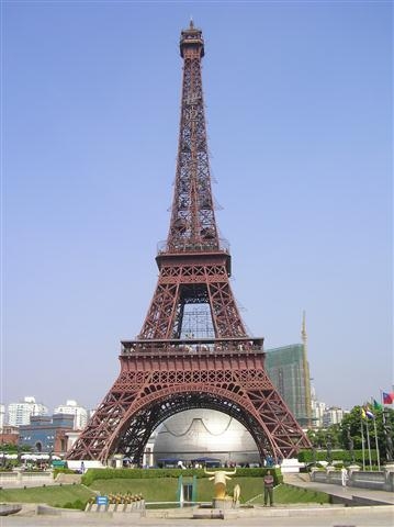 Another replica of the Eiffel Tower is found in China. In the western part of Shenzhen, there is a theme park known as Window of the World. The park has around 130 reproductions of the world's most famous tourist attractions – e.g. Taj Mahal and the Pyramids of Egypt. All these attractions are squeezed in 48 hectares of land and considered to be one of the leading tourist attractions in China. One of these reproductions is a 108 meter tall Eiffel Tower replica that dominates the skyline.