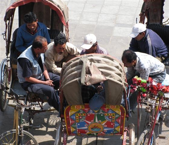 Each driver is an individual character and they all have their own stories to tell from Baji (Old Man) that started out hauling buffalo carcasses from the slaughter house to the butcher shop and now spends his days in the more lucrative trade of taking around tourists from the four star hotels, to Babu (Small Boy) who grew up on the streets when his parents died, he picked rags to save money to buy a rickshaw and now he peddles upper-class ladies to market...and the thousand Indra's, Keshaps, Deepkas and Biksahes in-between. As varied as their stories are, they all have something in common, they all know this city intimately and they will all greet you with a welcoming smile and enjoy nothing better than showing off their Kathmandu to you!