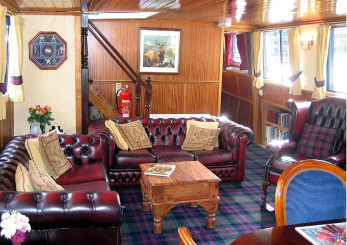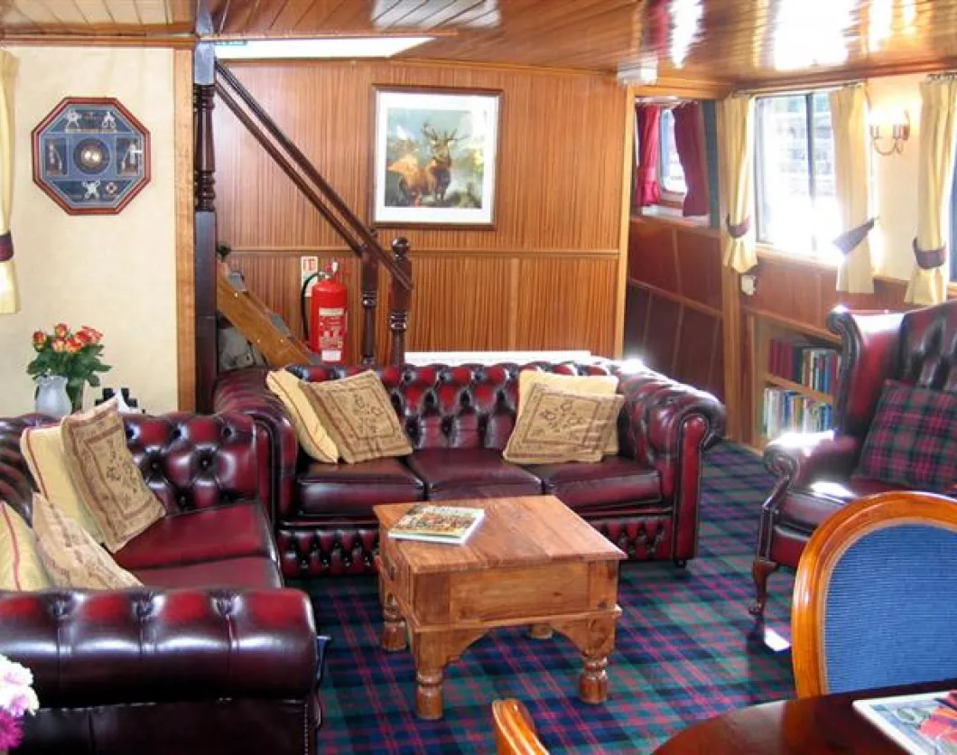 Built as a Dutch grain carrier in 1931, Scottish Highlander’s transition from industrial workhorse to trim tourism vessel was made in the mid-1990s. The interior wood and brass gleam to perfection, soft tartan carpeting is a gentle reminder of exactly where we are, and the furnishings suggest a slower Edwardian era of grace and polish when cruising 60 miles in a week was considered a civilized distance.