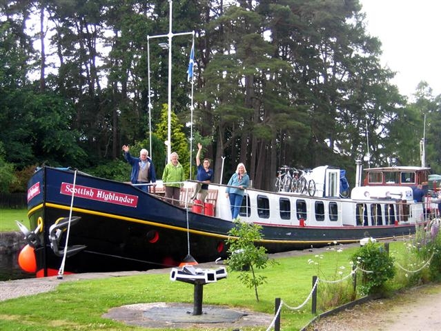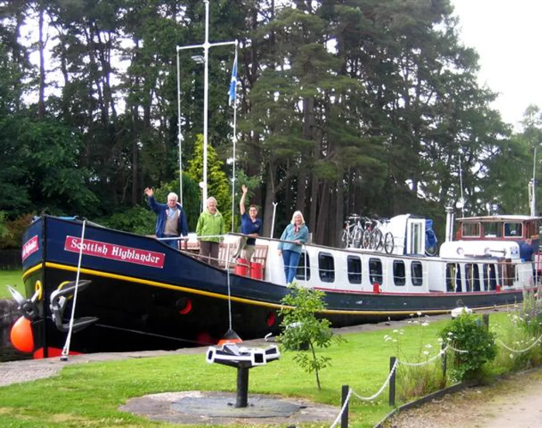 One-third of the barging route is manmade, with 29 locks, four aqueducts and 10 bridges making up the Caledonian Canal, navigated over several days. Built between 1803 and 1822, it was never the commercial success intended because the depth proved insufficient for industrial traffic. Impressively maintained today by government-owned British Waterways, the route is largely for recreation. Scottish Highlander is one of its largest clients in size, and the only hotel barge plying the waters between the two coasts.