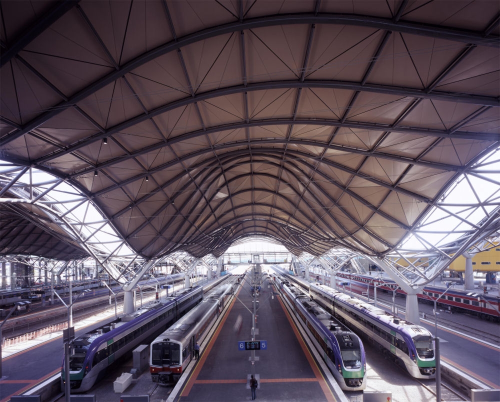 The undulating roof of the Southern Cross Station is the unique feature of the main railway station in the city. In 2002, Melbourne decided to develop the former Spencer Street Station into a modern well-designed transportation.