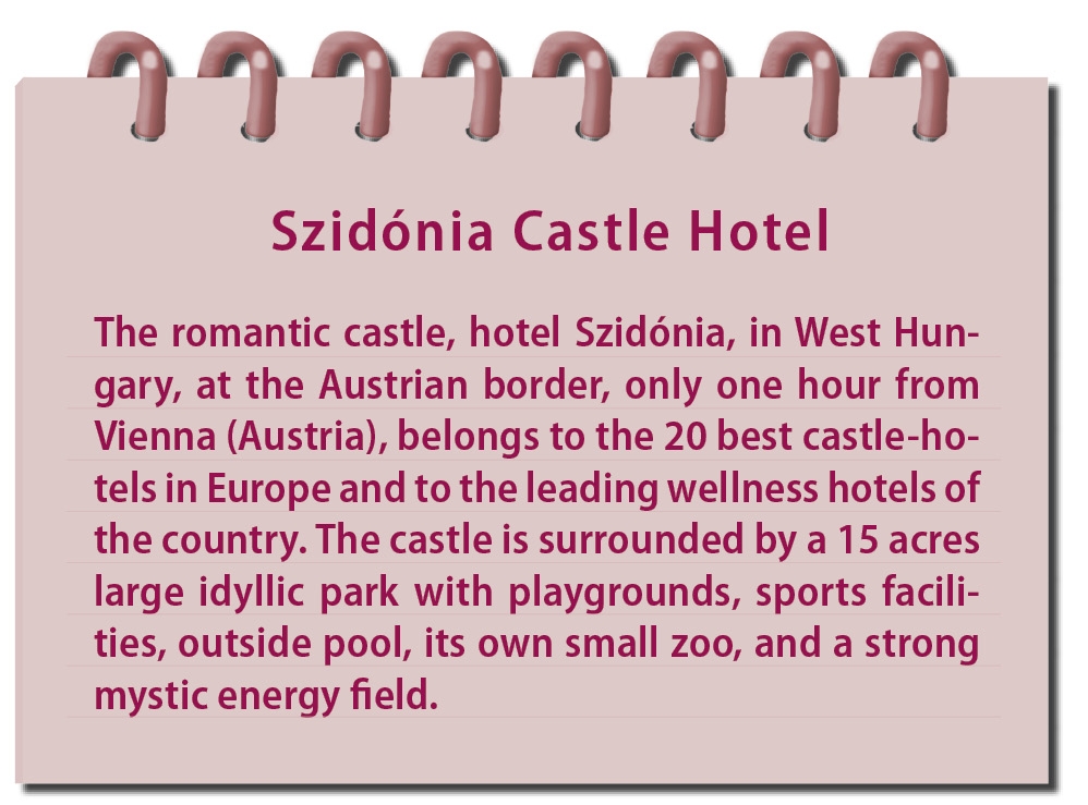 Szidónia Castle Hotel opened its doors in its current form in December 1999. In 2005, two of the elderly Zichy ladies returned to the castle for a long weekend to experience the Szidónia Castle Hotel wellness experience. It was a delightful gathering - a "fusion" of past, present and future – presided over by the new owner, Ms Martha Derry, whose love for the castle has made this terrific hotel possible.
