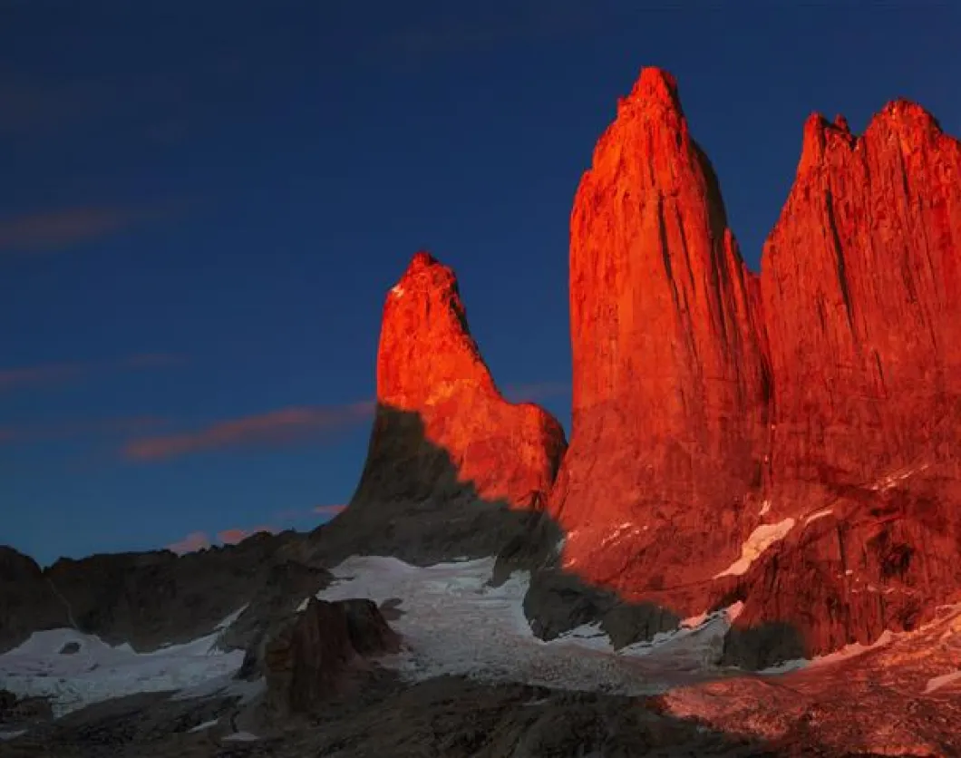Aged 145 to 66 million years ago, Torres del Paine in Chilean Patagonia occupies 2,442 sq. kilometers (935 sq. miles) and is popular for its amazing mountain peaks with the highest point at 9,462 feet (2884 meters).