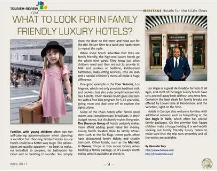 For marketing trends enthusiasts there is the Transport part presenting several cases of innovative marketing campaigns of airlines. Today’s passengers may book their flight through Facebook, get ready for wireless in-flight entertainment and get a personalized gift now and then. If you are looking for a perfect destination of your family holiday let us inspire you. The Heritage supplement discusses kids-friendly hotels.