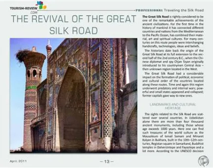 The spring issue of the Tourism Review Online Magazine is here. Explore the ancient beauty and the vast steppes of Kazakhstan. The Destination supplement presents not only the landmarks of this central Asian country but also the challenges of its tourism industry. Discover the same region from a different perspective. The Professional part invites you to follow the Great Silk Road and visit several countries that joined the project. While exploring the silk route you might meet numerous pilgrims. Pilgrimage travel is a growing force in the tourism industry. Learn more in the Ethical supplement.