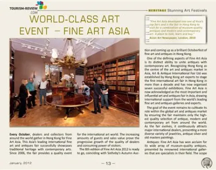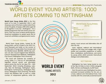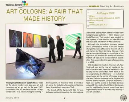 Welcome to the first issue of Tourism Review Online Magazine in 2012. Get creative and visit world’s best art festivals. The Heritage supplement presents wonderful art events in Wisconsin, Mumbai and Cologne. The history, culture and tourism attractions of Uzbekistan are the topic of the Destination part. Explore the nation of yurts and fabulous cuisine. Memorials of the WWI in Verdun, Somme, Ypres and many more are the focus of the Adventure supplement. Travel back in time and learn more about one of the greatest conflicts of human history.