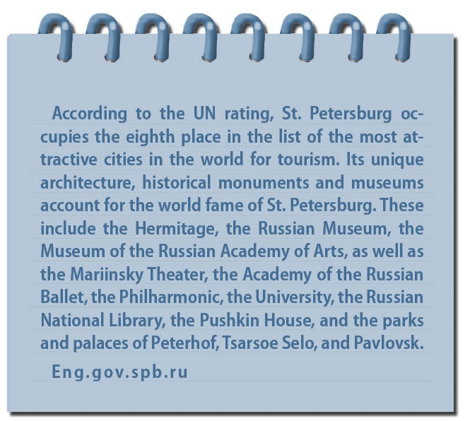 The tourist surveys report, that in general the visitors are satisfied with the service level and quality of local tourist agents. But the main disadvantage is noted in the accommodation prices and living expenses, which are even higher than the average rates in Europe. According to the expert analyses this issues lower the St. Petersburg’s competitive opportunities in the international tourist market.