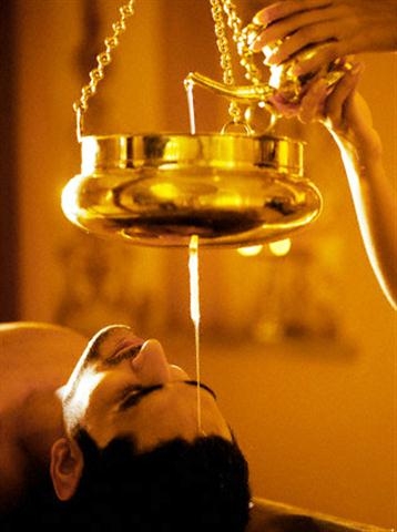 - Simiarly, Ayurvedic medicine is also practiced in many spas around the world, with the Indian head massage called Shirodhara, widely promoted in many spa destinations. This traditional treatment involves hot oil being gently poured over the forehead of the spa guest.