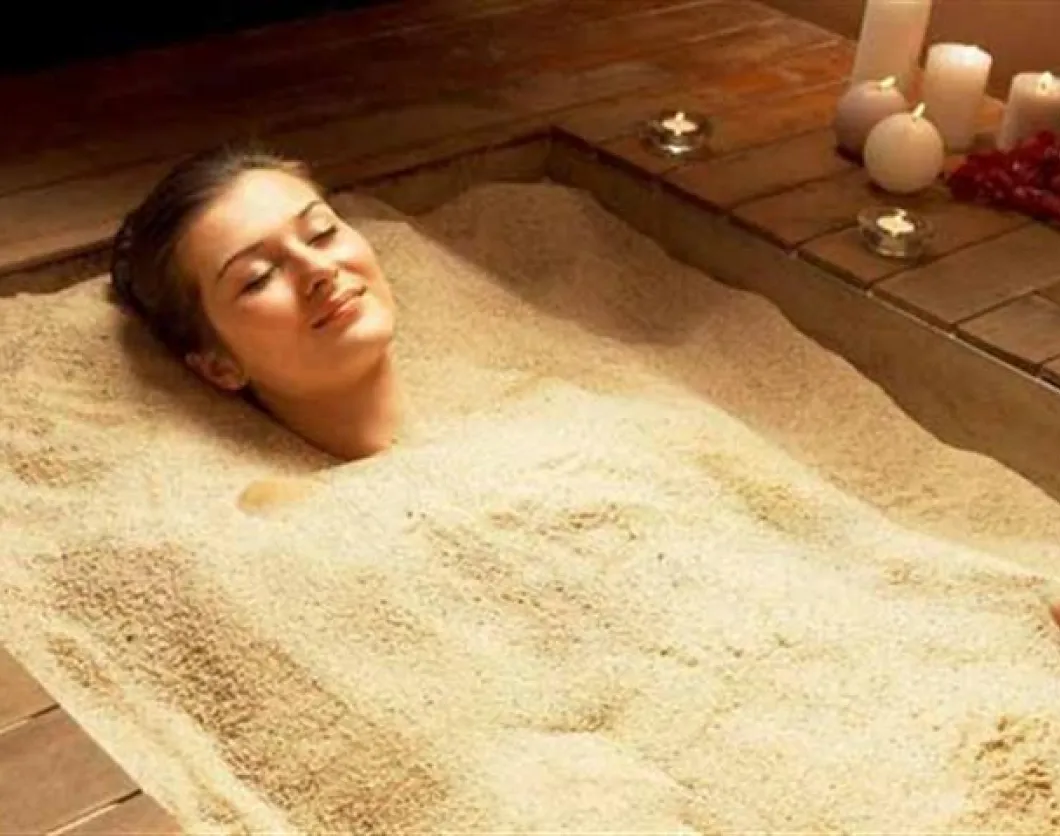 One of the popular ancient treatments is Sand Therapy. The scientific researchers have found that filthy and sluggish water in the human body causes diseases. Immersing oneself into hot sand for about 20 minutes, has shown to release 3-4 liters of sweat from the body which helps to cure various diseases such as arthritis, tissues disorders, seasonal affective disorders, reduction in cholesterol levels, curing impotence, improving sense of taste and cure psoriasis. To practice and enjoy the benefits of sand therapy, Marine Sand is the perfect place to visit which is located in the region of Siwa in Cairo, Egypt. Sand Therapy is quiet popular among European and Asian spa-goers and it is also becoming popular among Americans. It is important to keep in mind that sand bathing is not recommended for heart patients, people who are suffering from hypertension or varicose veins because of the high temperature of sand which is usually about 45 degrees Celsius.