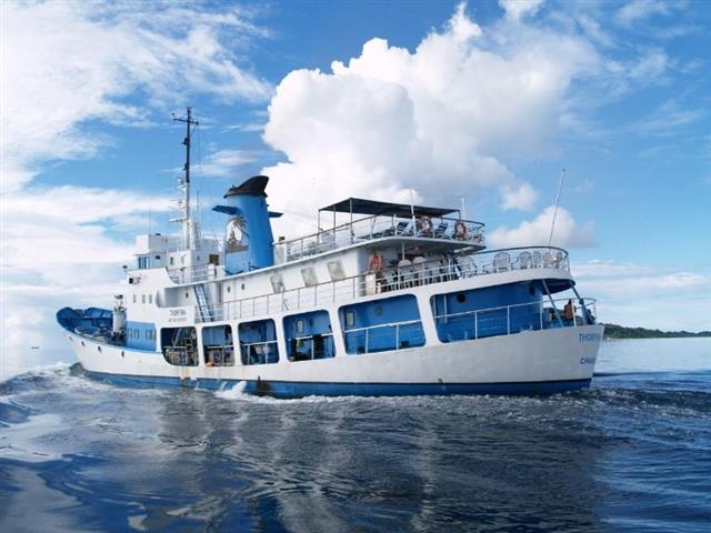 Diving is conducted from 2 or 3 shore-side facilities and two respectable liveaboard dive cruisers. One of these the SS THORFINN began operations 28 years ago as likely the world’s original live aboard sport dive cruiser. After numerous rebuilds she remains one of the world’s best and still largest in size and tonnage, continuing to operate on original huge steam engines. Another vessel, the slightly smaller ODYSSEY has developed a strong reputation as a solid performer during 8 years on location. BLUE LAGOON DIVE SHOP is the original dean headed for years by well-known citizen Kimiuo Aisek who watched the destruction and battle from behind sheltering palm trees as a teenager.