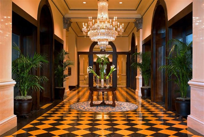 The hotel's Grand Lobby, adorned with sparkling crystal chandeliers, hand-loomed silk carpets, and artwork gives guests a preview of modern and elegant guest rooms and 22 distinctive meeting rooms.